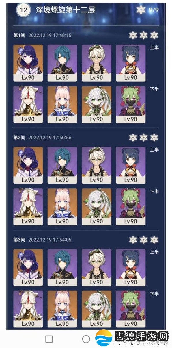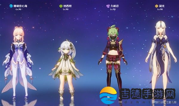 水草雷带岩(这个队伍,没有心海的话可以用芭芭拉,纳西妲和久岐忍需要叠搞精通,凝光是破盾用的,第二层黄金王兽破盾用,也可以用其他岩系代替)。