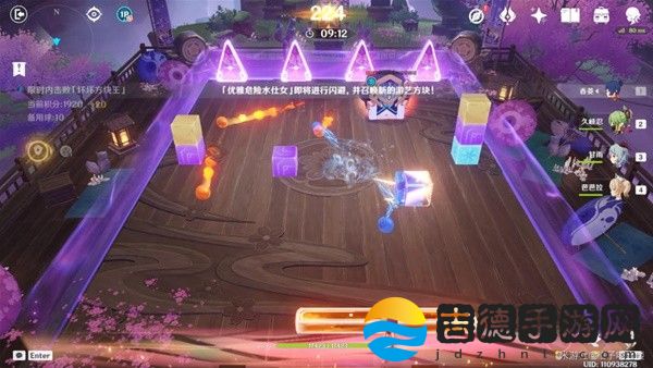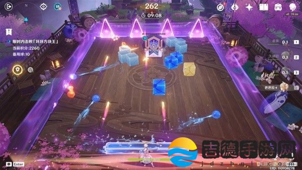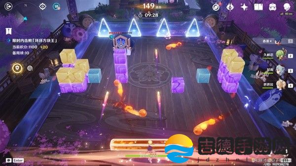 接下来几轮火主站场,雷+水辅助利用相同元素方块反弹攻击BOSS