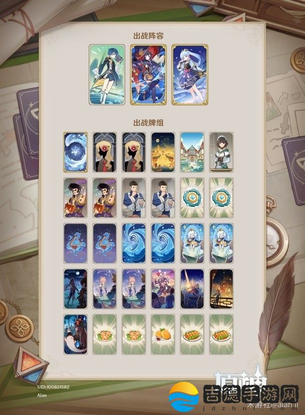 卡组里带的双水治疗+双莲花酥+土豆饼是为了过牌和斩杀准备时间用的,也是属于控场的一部分,前期能用就用(莲花酥可以留一张给神里)后面神里出来一般只打一两回合,基本不吃回复。