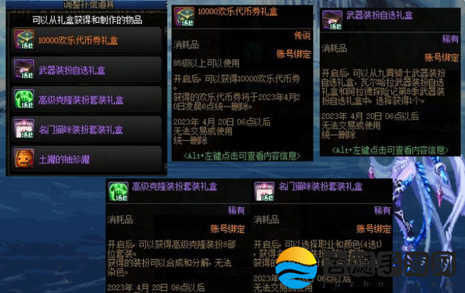 dnf和谐补偿礼包奖励介绍图一览:
