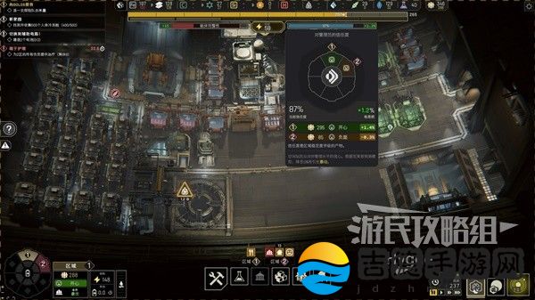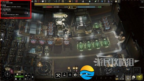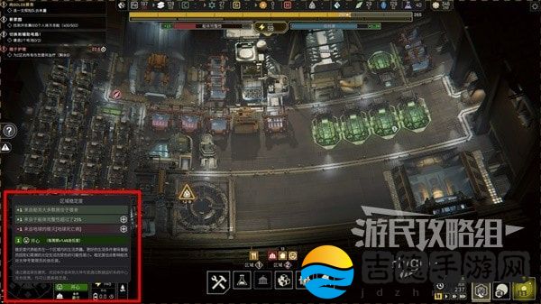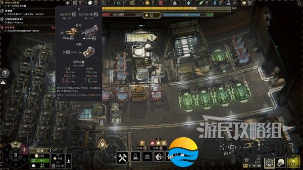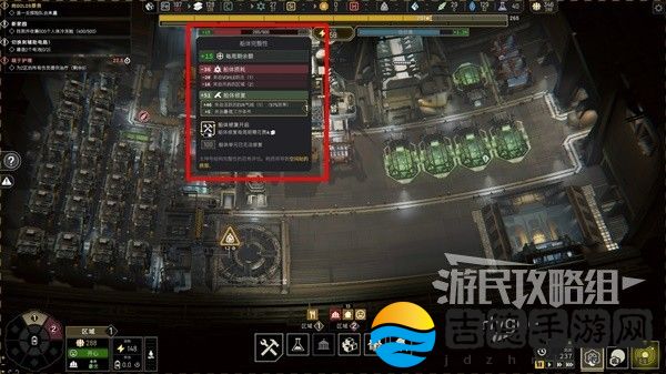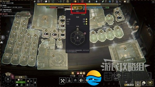资源栏下方的黄色条为电力,玩家可以在此处查看电力的使用情况以提前做出应对。