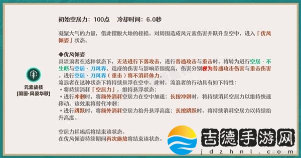 ①.施放战技后的浮空状态不改变普攻/重击的附着强度(仍为弱风),具有对空/对地的能力。