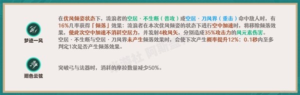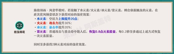 ①.天赋2的伤害类型不属于普攻、重击、下落攻击、元素战技和元素爆发的任意一类,为无类型的风伤攻击,这也意味着无法获得以上对该五种伤害类型的伤害提升。