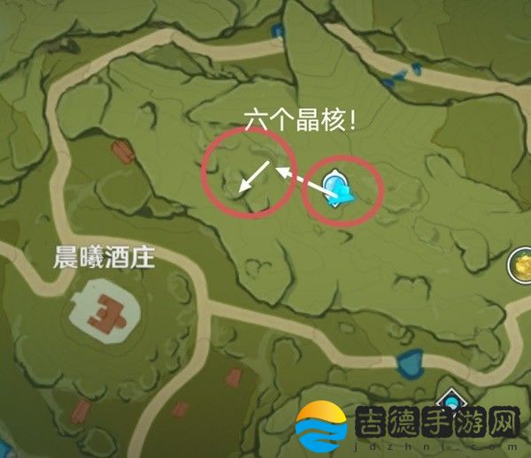4.第四个地方在清泉镇附近,从传送描点走一下就可以看到,有三个晶核!