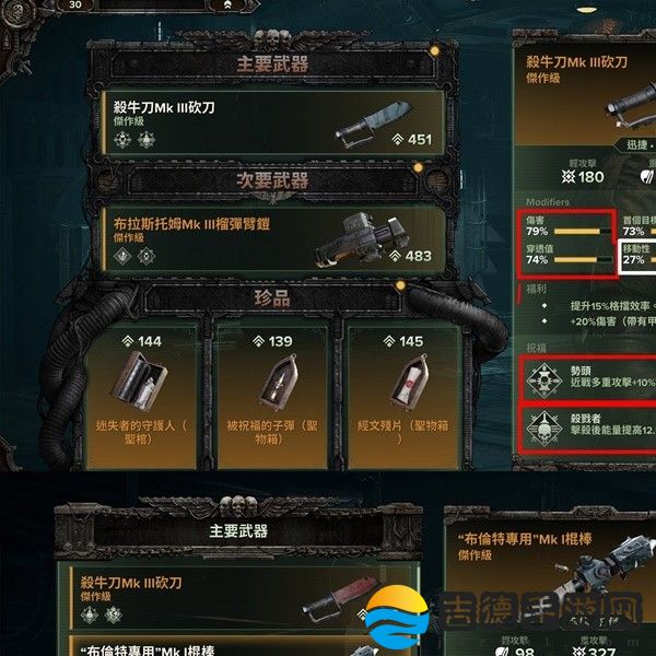 2.砍刀可以带带手雷爆炸,这玩意五级难度运气好也能秒满血重甲欧格林,,之前只给一个雷,太废了,现在两个雷了可以带带了,不过爆炸判定比较模糊,有时能秒,有时不能秒,迷!,棒子没修bug带流血,修完bug带欧格林减伤。