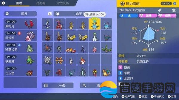 钛晶:水或妖精、性格:固执。努力值:物攻252HP252防御6、携带道具:贝壳之铃。