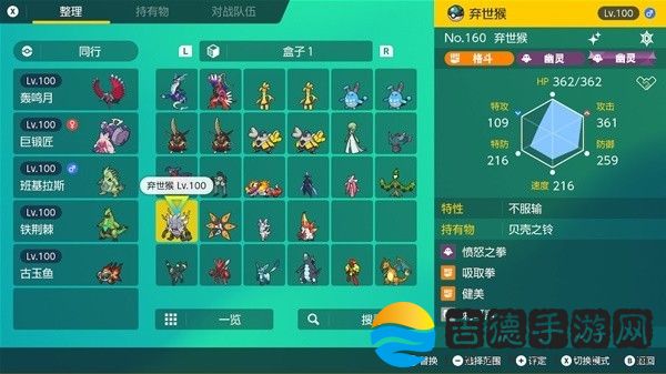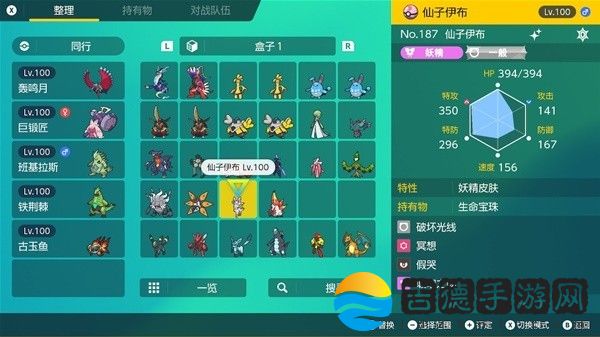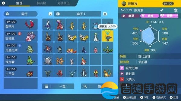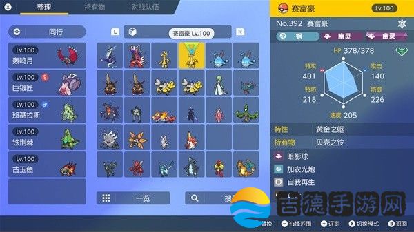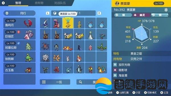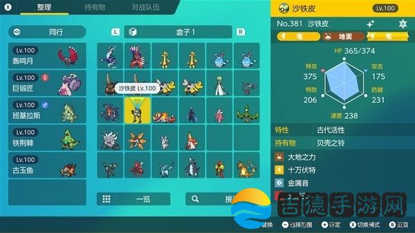 钛晶:地(我碎片不够还没改)、性格:内敛。努力值:特攻252、HP252、防御6、携带道具:贝壳之铃。