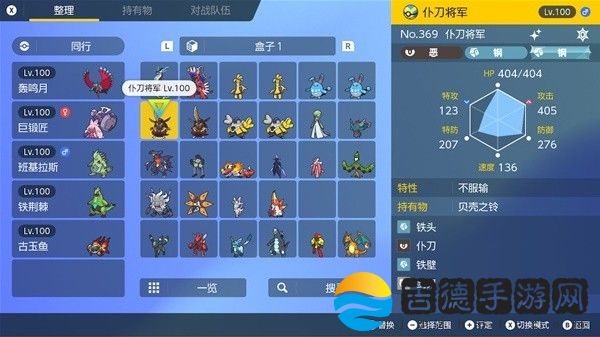 钛晶:钢或幽灵、性格:内敛。努力值:特攻252、HP252、防御6、携带道具:贝壳之铃。