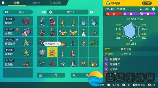 钛晶:毒、性格:内敛。努力值:特攻252、HP252、防御6、携带道具:贝壳之铃。