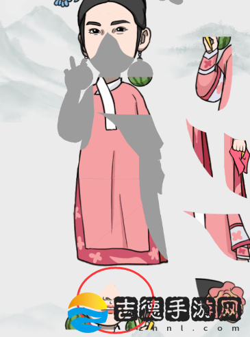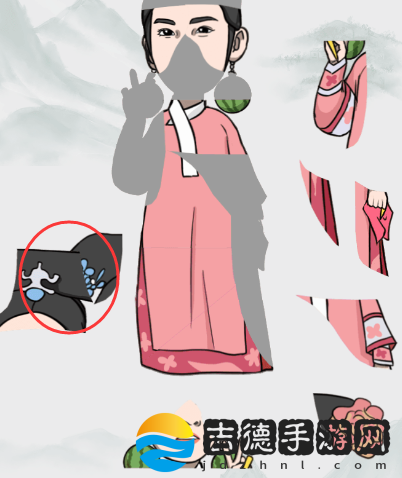 2、下方嘴部和手部的碎片是一个镜像的碎片,需要我们点击一下让其转过来才能拼上。