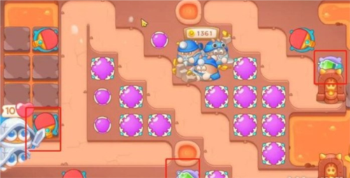 5、第五波。清除上方道具后,放1球拍。