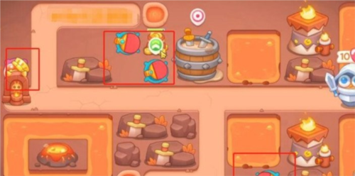 6、第六波。道具全清,左侧1火焰塔,1球拍。