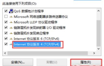 4、弹出页面后,找到internecine协议版本4.,然后单击属性。