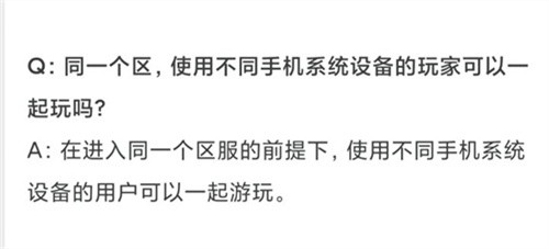 大家问的这个问题,其实策划已经在游戏开服前就回答过了,原话为“在进入同一个区服的前提下,使用不同手机系统设备的用户是可以一起玩游戏的”,这也就是说,如果大家不在同一起区,那么大家是无法一起玩游戏的。