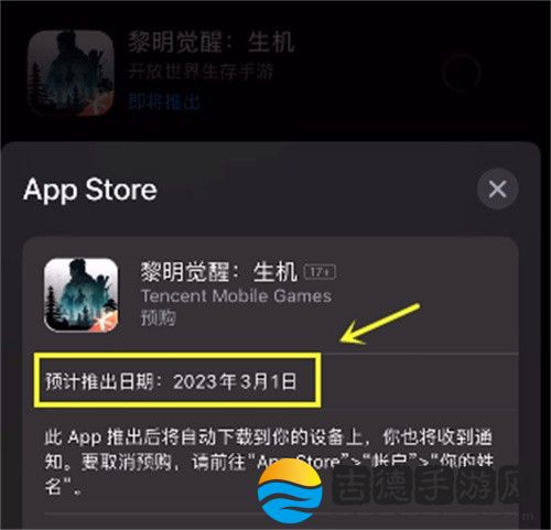 当大家点击【获取】选项后,就会出现一个弹框,在弹框中,目前说明了游戏会在3月1号上线,所以苹果玩家需要等到3月1号才可以玩这款游戏。