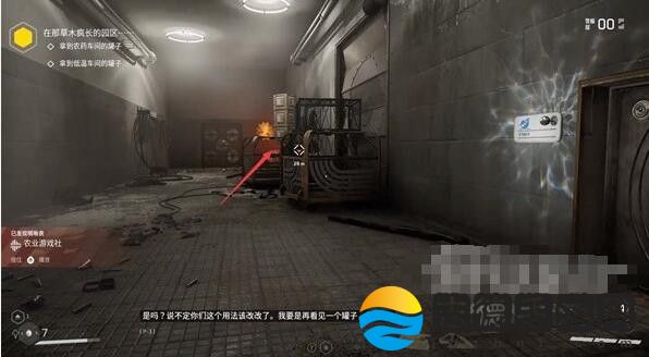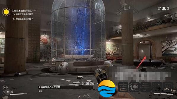 任务“在那草木疯长的园区”,先在大厅插上藻类车间和高温车间的罐子后,这样右侧楼梯下的门就开了。