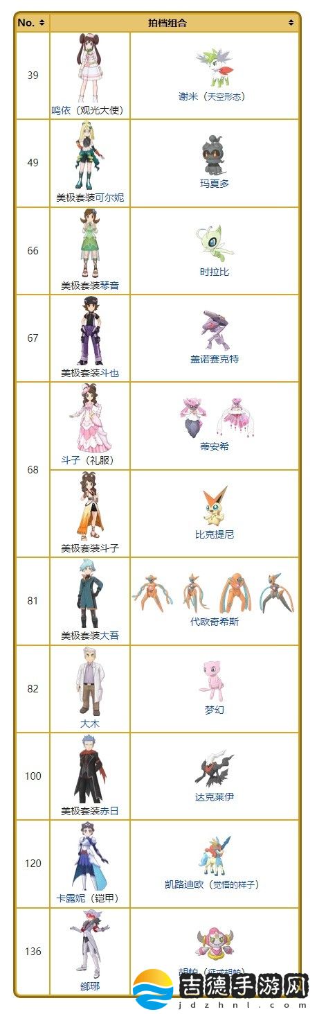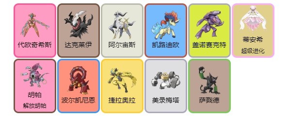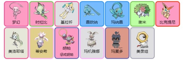 下列拍组以幻之宝可梦作为拍档宝可梦。