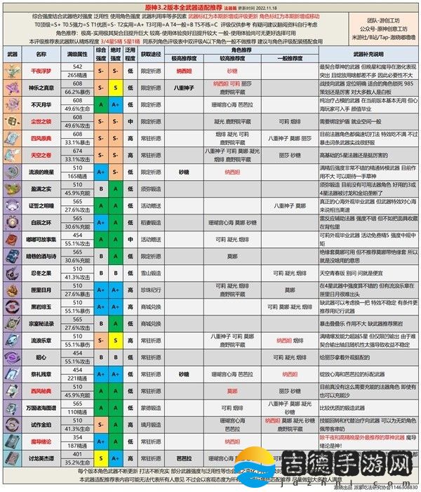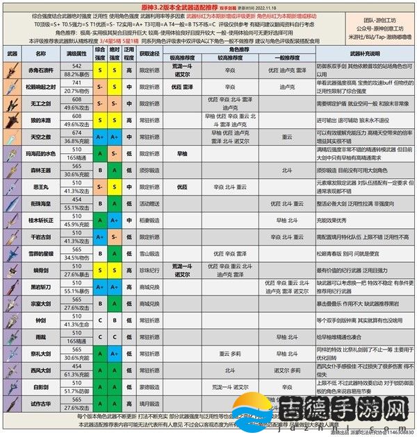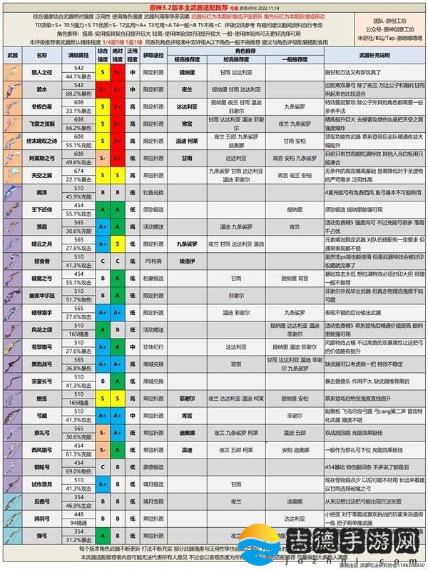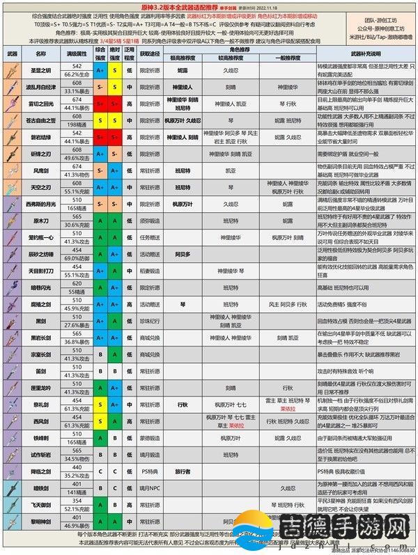 《原神》中武器共分为五种类型,在现版本中各个类型的武器有哪些好用的选择呢,下面请看“澈晓嘟噜噜”带来的《原神》3.2版全武器强度排行,希望能够帮助大家。