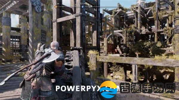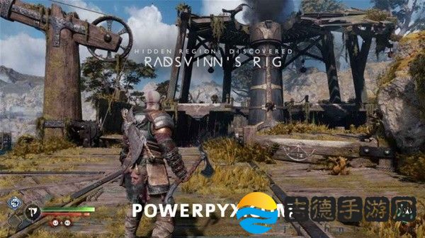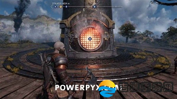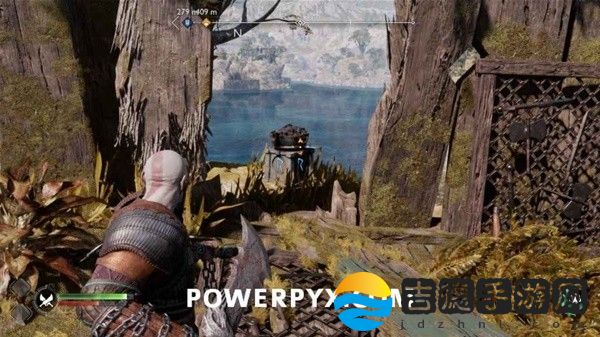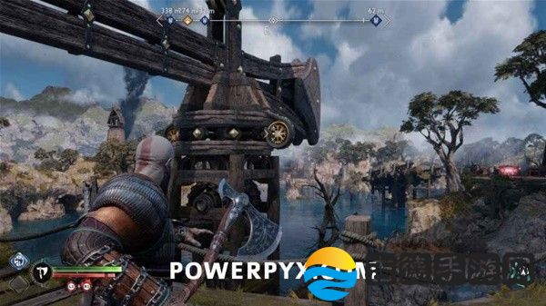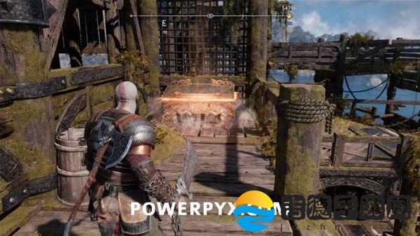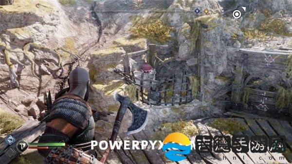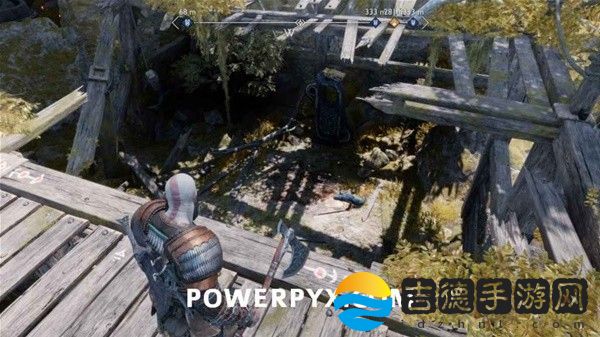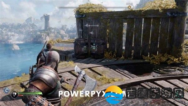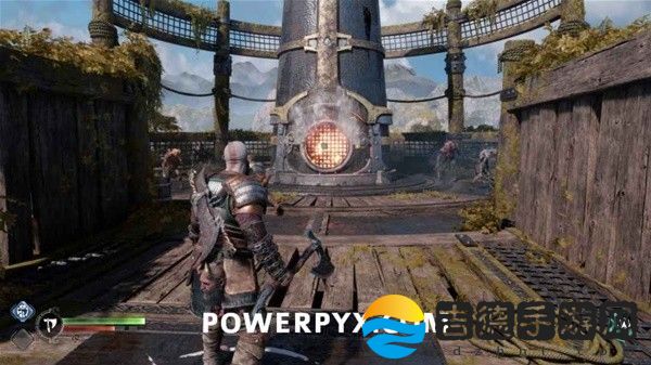 爬到右边平台上,用斧子攻击装置开门,然后爬上塔楼,里面有一个传奇宝箱。