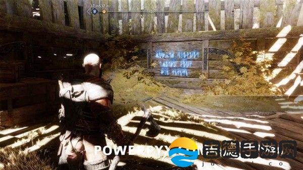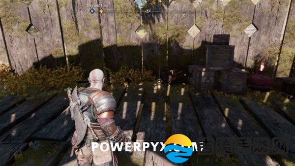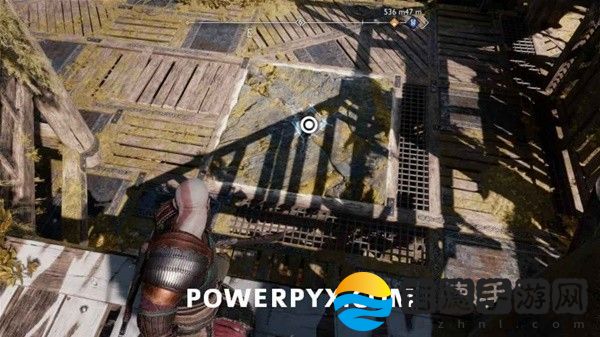 打爆炸药桶后,进入旁边的屋子,然后往上走。来到下图位置,瞄准下边的地板,砸下去。在这里可以获得一个传说。