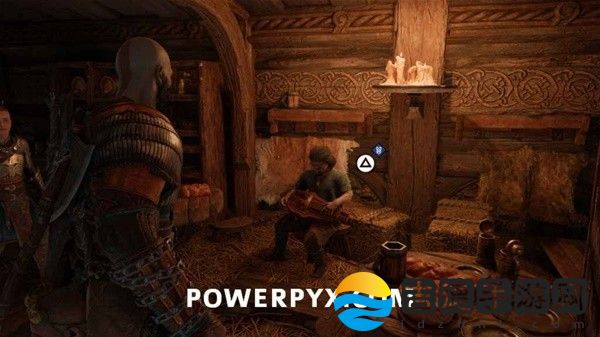 这里还有一个三女神宝箱,需要用火焰点亮附近的3个符文石才能打开。一个在炉子后边,让阿特柔斯打破木桶;一个在围栏后边,让阿特柔斯打爆红罐子;一个在宝箱旁边。