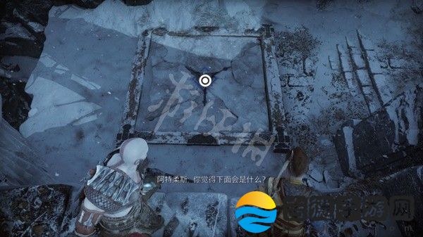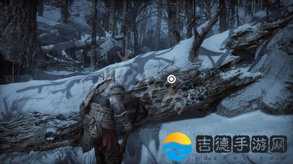 进入神殿后会遇到柱子堵路,先拉动柱子把旁边树上的雪震落,接着用斧子砍断右侧的树,然后再将柱子拉向右侧。