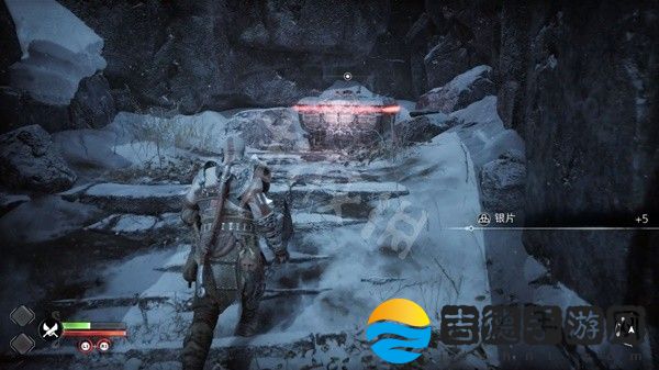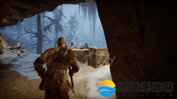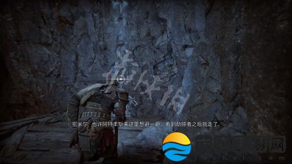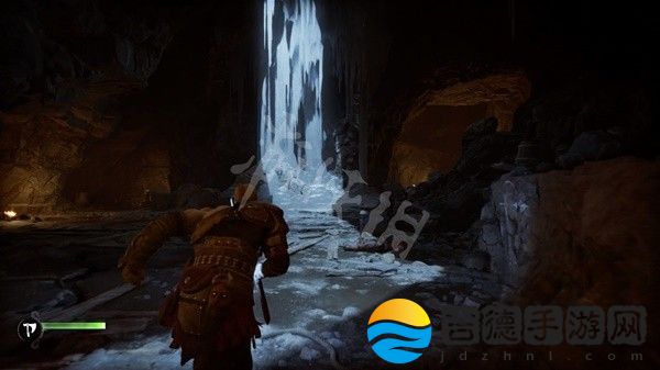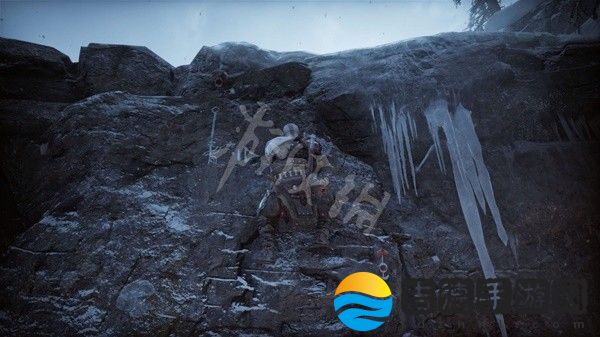 来到狼窝,重击凿开岩壁缝隙中的坚冰,然后穿过岩缝。