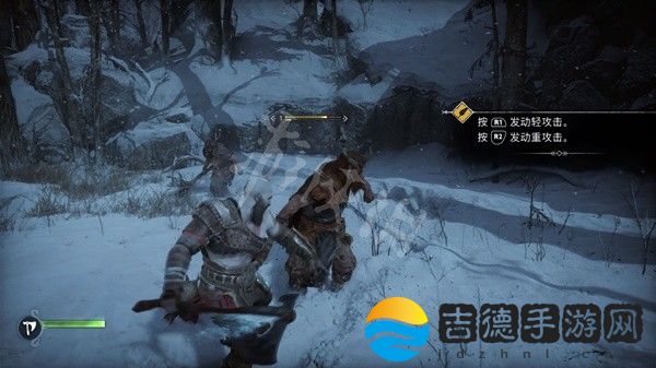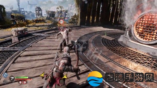 旋风回旋:赤手空拳状态下按L1+R1可以快速召回利维坦之斧并施展一次强力的旋转攻击,随后立即按R1可以跟进一次斩击。
