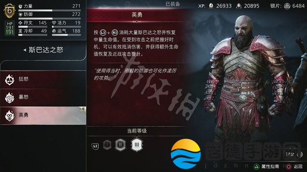 英勇:消耗大量斯巴达之怒并恢复中量生命值。在受到攻击之前把握好时机,可以有效抵消伤害,并获得额外生命值恢复及近战攻击提升。