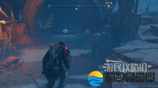 接取任务后,就可以骑狼前进了,来到荒原,大风弥漫,几乎看不到任何东西,进门后右转,看着地图找到进入地下的入口。
