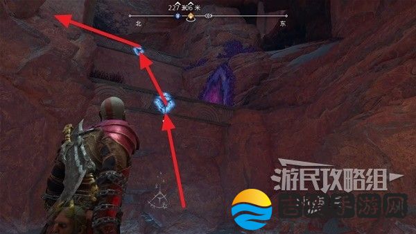 进入洞中,有很多黄昏石,利用黄昏石,击败敌人,然后从下图箭头处爬上去。
