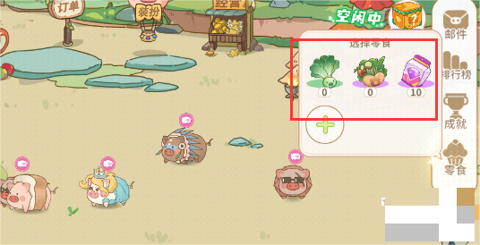 3、我们还可以通过喂食零食让猪猪爆菱角,不过这是概率性,不一定会不会刷出菱角。