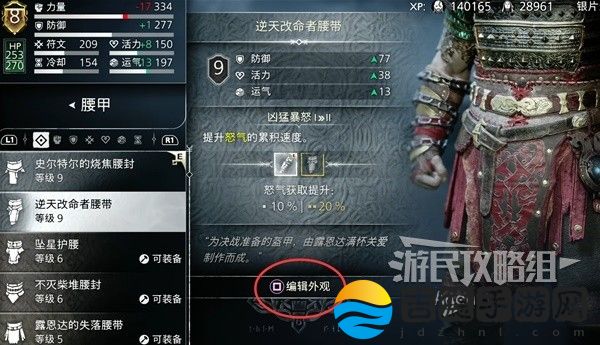 在盔甲页面,选中满级的盔甲,就会在盔甲介绍的底部看到“编辑外观”的选项(如下图)。