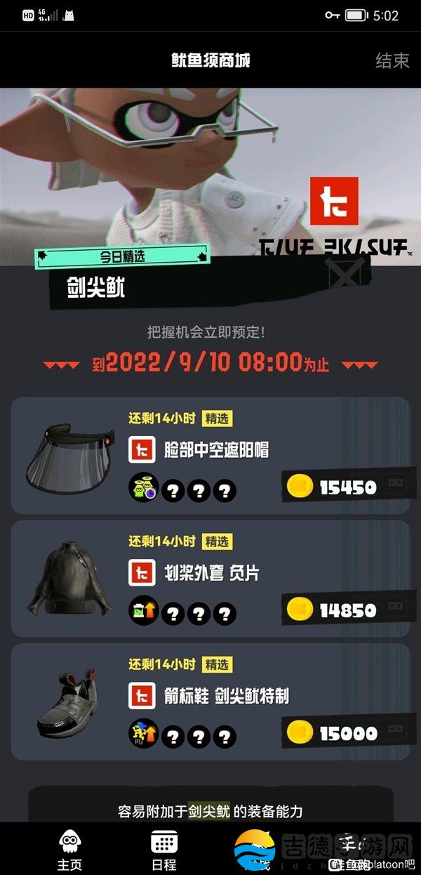 2,Nintendo的app,去鱿鱼须商城,可以预订装备(如图),进游戏找大厅门口的海胆哥,花金币买。