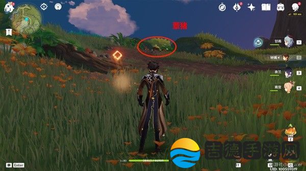 1.首先是任务接取点,先切出弓箭角色,切出弓箭角色,然后站在稍远的距离射击下图中的蕈猪,注意一定不要直接靠过去,不然蕈猪被吓跑就需要等明天才能在做。