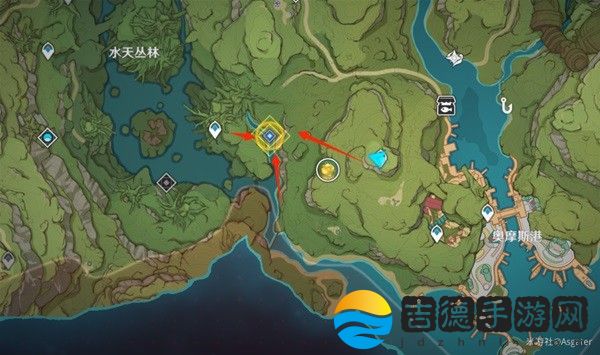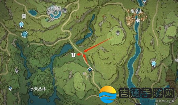 3.首先是水天丛林南部的点位狩猎瞑彩鸟,推荐从下图的副本前进,缓慢推进,切出弓箭角色!