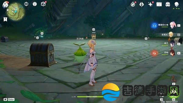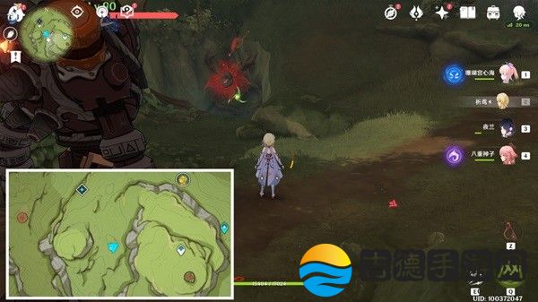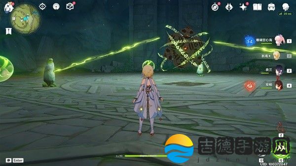 5,用火元素角色(安柏)攻击石锁,解除封印,再击败小宝