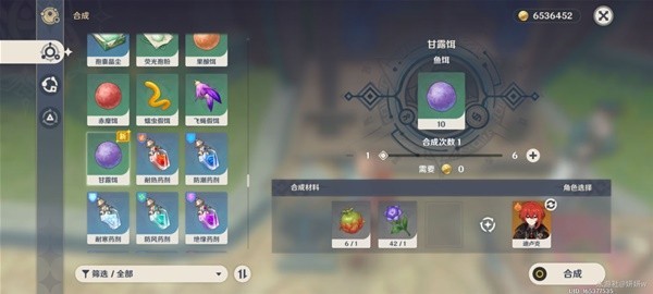 制作对应鱼饵所需要的材料,在跑图的时候应该多多少少都有点吧,这里注意合成一次会获得十个,千万不要一股脑合太多了。