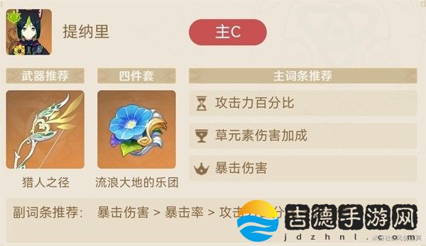 如果第四个角色不是草系戴草套的,提纳里可以自己戴,否则推荐戴乐团套。提纳里跟八重互相打激化。