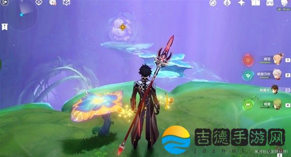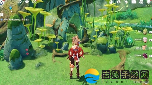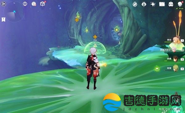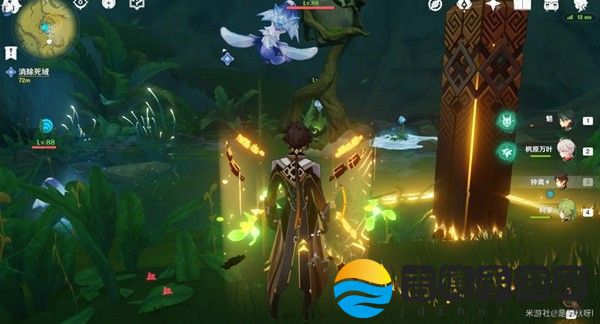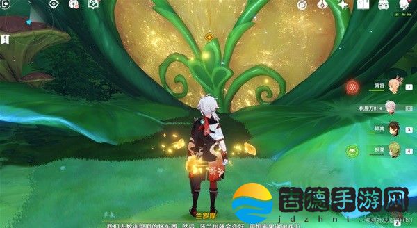 过去后,拿上草元素种子,攻击屏障四周三个草机关。