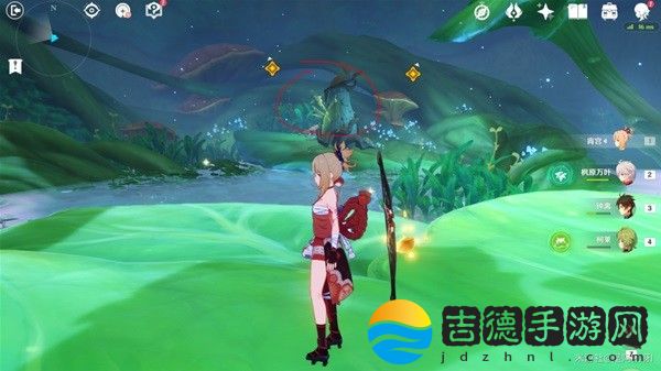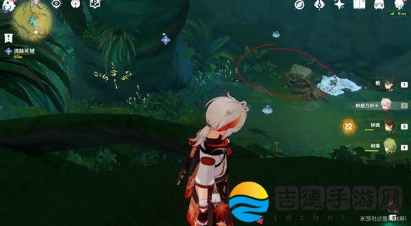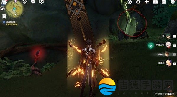 第二枚弹奏进入红圈,进入后草元素击中下图二中右侧机关