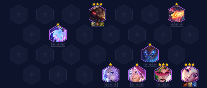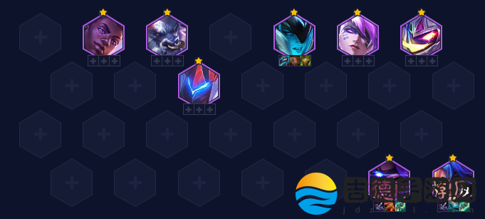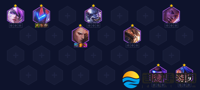 贾克斯体系老阵容了,更新后贾克斯基础技能伤害受到法强影响,这版本数值怪兽又回来了。这套阵容中期发力,吃分算上比较稳定,测试中高斗与机甲搭配各有千秋,机甲的伤害会更高一些,但高斗的吃鸡率却比机甲更稳。但阵容缺点也非常明显,这版本大部分阵容在后期都在开高秘,贾克斯三星晚也就只能吃分。