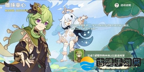 《原神》3.0版本雕琢童心活动的前置任务是“被嫌弃的木刻”,完成此任务可以获得80原石和精致留影机,同时也可以解锁柯莱,许多小伙伴可能还不太清楚任务位置在哪,下面就为大家介绍一下《原神》柯莱领取方法及被嫌弃的木刻任务位置,希望对大家有所帮助。