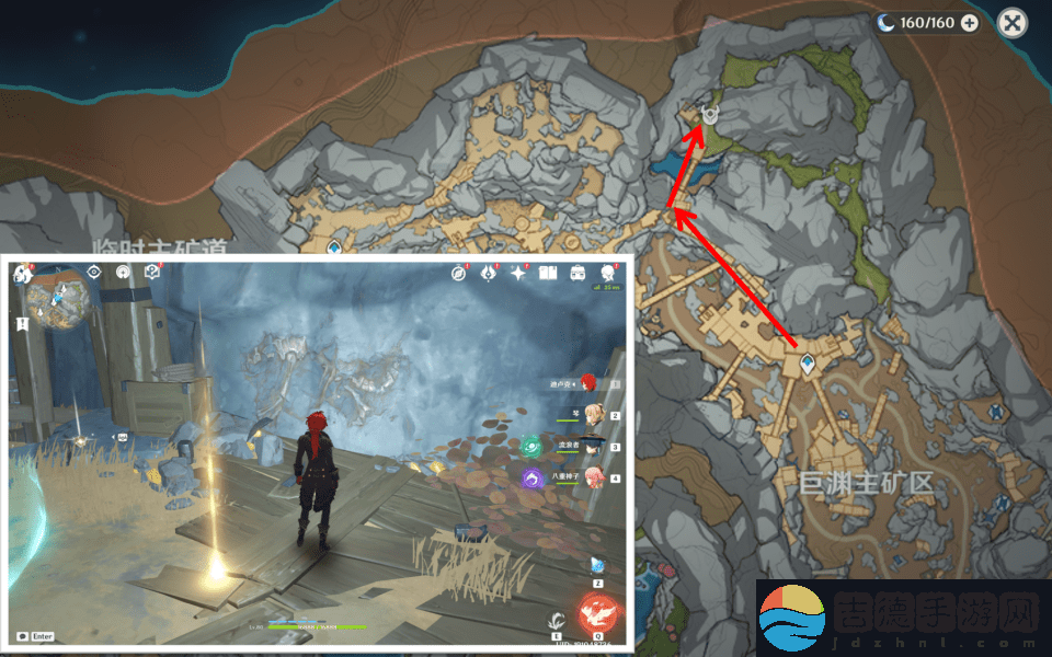 传送至巨渊主矿区北方锚点,顺着吊桥前进即可,注意拐弯处的吊桥在高度较低。