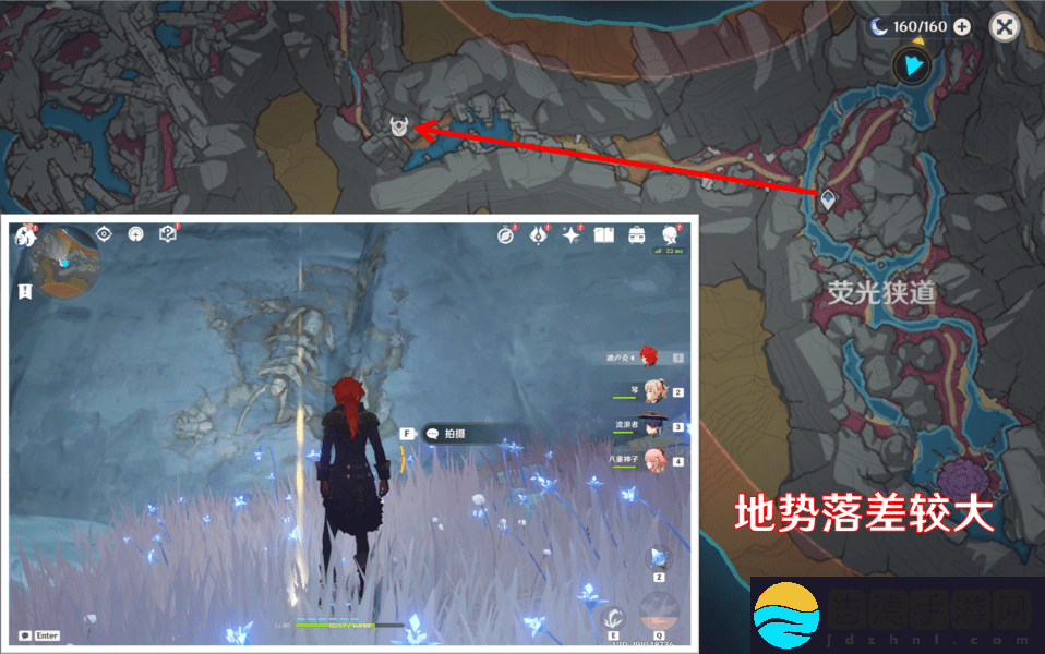 传送至临时主矿道东边锚点,往南方跳下去即可看到拍摄点,周围有盗宝团需要事先清理。