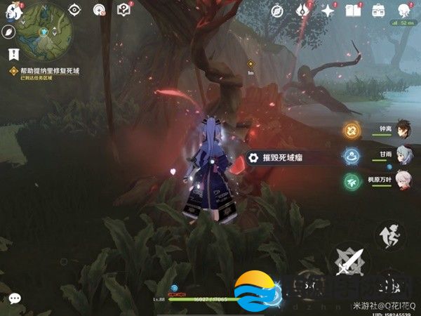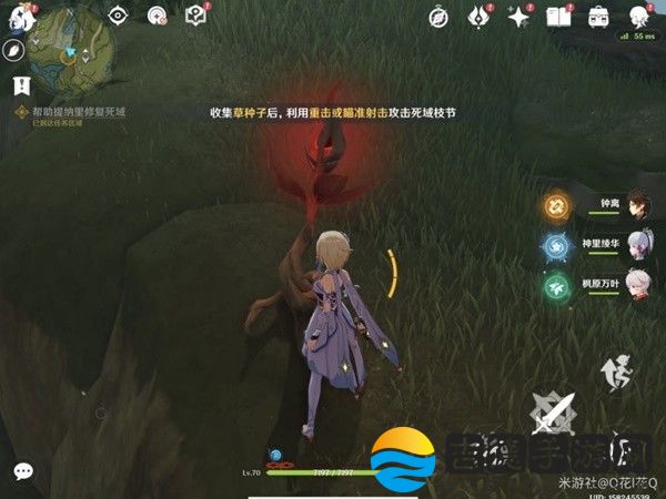 7.中间剧情过完,和提纳里采药,采药后去修复死域,方法就是收集草种子后,利用重击或瞄准射击攻击死域枝节。