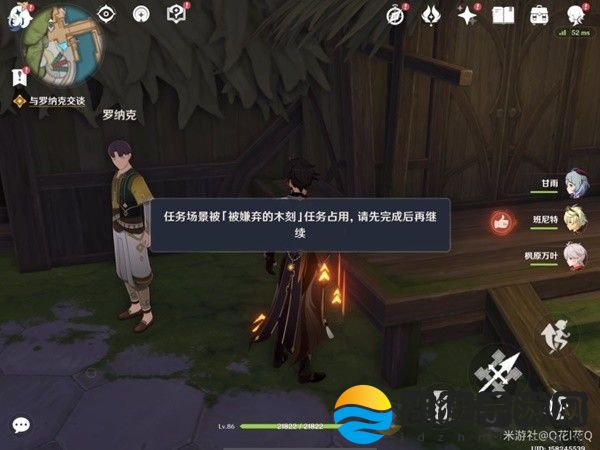 到这里的时候提示,任务场景被(被嫌弃的木刻)占用,相同的小伙伴点击下面链接先去做木刻活动。