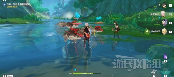 对话完毕后,到达目标位置清理死域。根据死域瘤延伸出来的红线可以快速找到枝节位置,默认状态下每触摸一次草种子可以使用三次,若中途草种子消耗完毕可以重复拾取。总共需要清理2处死域,清理完毕后前往目标地点找鳄鱼,击败所有鳄鱼。