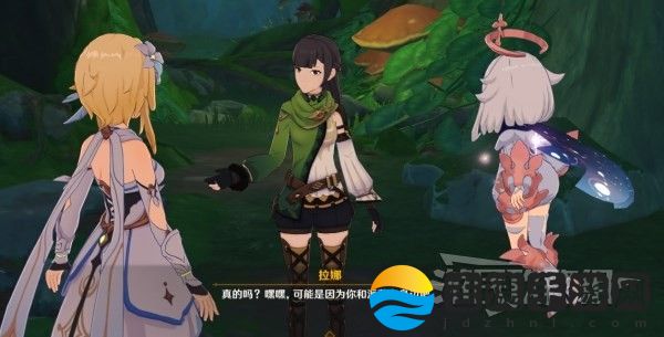 看完剧情返回洞窟后,跟着绿色痕迹前进,前面需要过河,注意回复体力。与拉娜互动触发剧情,然后完成森林书第一章《林中奇遇》任务,进入森林书第二章。