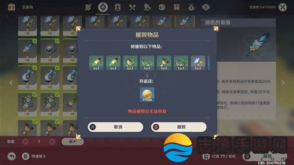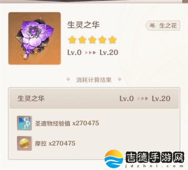 每一个+20的五星圣遗物则分别需要27w+经验和摩拉,跑一次120个点位大约能获得7w~8w左右的圣遗物经验,大概每3~4天就能拉满一个五星圣遗物,缺摩拉的小伙伴还能在背包里摧毁低级圣遗物换摩拉(圣遗物经验与摩拉1:1,不存在亏损)